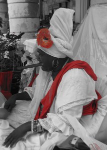 Kenia me explicó muchas cosas…y cómo el mismo sistema y la influencia de Africa en su cultura han hecho que haya expresiones religiosas  diferentes que me comentaba eran parte de las creencias Orishas…hablamos de los “trabajos” de brujería, de los Babalawos (conocí uno, taxista, muy amable y muy abierto al contestar las preguntas que le hice)  que son santeros del culto Ifá, de la gente que decide volverse santo en vida y pasan por un año de pruebas, dependiendo del santo que los haya escogido…el tema fue amplio e interesante.  Aunque la religión es predominantemente católica (como nos dice Wikipedia – ver más detalles en http://es.wikipedia.org/wiki/Cuba#Religi.C3.B3n ) hay otras religiones…. y la Santería que se ha establecido como una más.  (Foto: RossQ)
